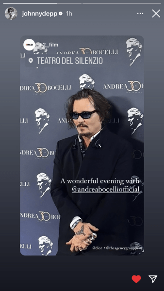 And Johnny Depp has been in Italy for the last couple of days, as part of a 30th Anniversary celebration of Andrea Bocelli.