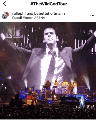 It looks like the first night of Nick Cave & the Bad Seeds’ Wild God tour in Amsterdam was a HUGE success last night. There were tons and tons of videos and photos on Instagram this morning that were kind of breath-taking. The energy. The intensity. The joy.