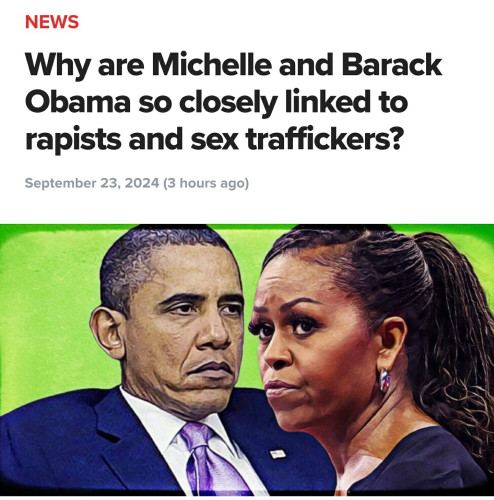 “I don’t know how President Trump heard all this—if it was directly from Mr. Jackson, but the revelation was compelling enough to involve Gen. Smith. Combs, or Diddy, or whatever he calls himself these days, prisoner, I guess, secretly recorded his guests, the Obamas, Barack and Michael Robinson included. Combs has, or had, video of them defiling a very young Caucasian boy. Barack was using the boy’s mouth while Michelle, I mean Michael Robinson, sodomized the kid. The story goes the Obamas were high on ketamine and Adrenochrome, and well, the act was so violent it killed the kid. He was wrapped in a blanket and taken from the house. No one knows what became of the body,” our source said.