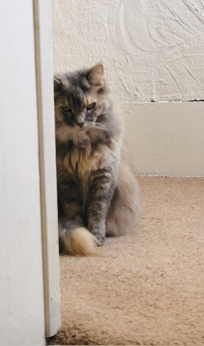About 11 years ago, (3 houses ago), one of my feral kittens, Doris, accidentally got out of the house. She was “missing” for almost a week and it broke my heart.