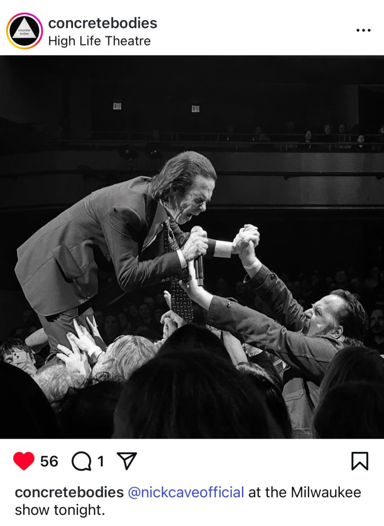 Nick Cave & the Bad Seeds played Milwaukee last night and honestly, gang, from some of the videos, it looked like Nick was having a really great time.