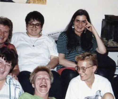 This photo was taken in Brooklyn, back in the mid-1980s. This was the “Dyke-A-Go-Go” crowd back then!! Not really prone to ‘drama’ — just incredibly smart & funny gals!! (And kind of remarkably over-sexed!!)