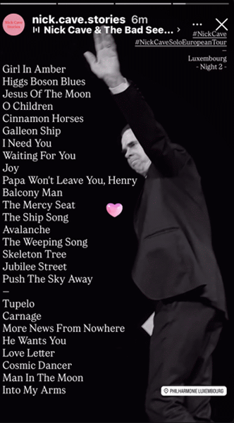The final set list of Nick Cave’s Solo Tour of Europe 2025! Practically the best encore ever!! (I don’t actually know what would be the “Best Encore Ever”, I’m just sayin’ this one is really great!)