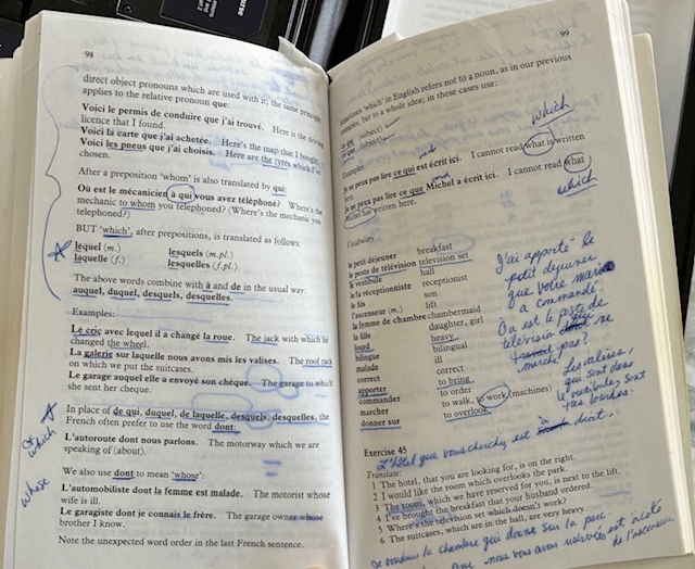 I have studied French, officially, since I was about 9 years old, back in Cleveland, and then I never stopped. (And even when I was confined to the mental hospital for 6 months at age 15, my mother arranged for a French tutor to come visit me once a week, anything to try to keep me engaged with living.)