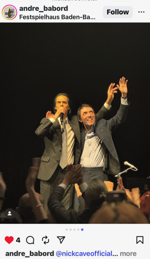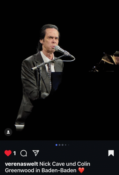 Tomorrow, Nick Cave and Colin Greenwood continue their tour with 2 sold out shows in Baden-Baden, Germany! (And then there are 2 sold out shows in Luxembourg the following week, and then the tour is OVER!) (Wow, I can’t really believe that. It means the summer is basically over, too.)