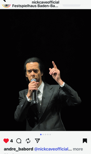 From Nick Cave’s Solo Tour with Colin Greenwood on bass, September 2023: Cleveland!! (What an amazing show.)