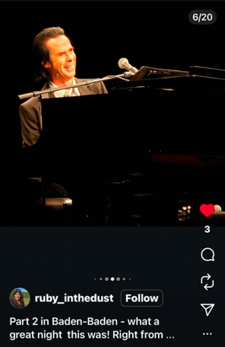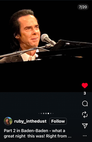 While we wait for the 2 sold out shows in Luxembourg next week (9/10 and 9/11), which will signify the end of Nick Cave’s Solo Tour of Europe with Colin Greenwood on bass!