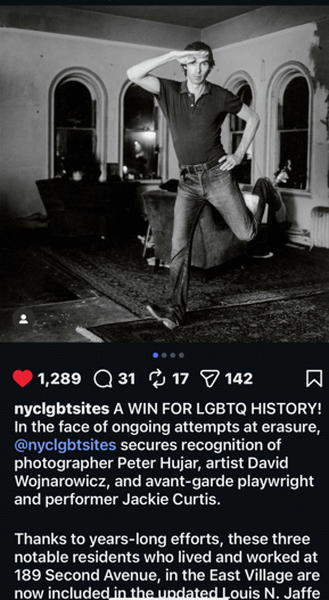 From NYC LGBTQ historic sites on Instagram!! Peter Hujar’s old apartment in the East Village has just been made an LGBTQ historic residence site!