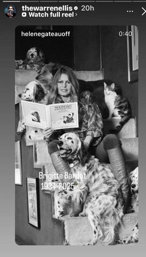 Warren Ellis also posted some nice photos of Brigitte with her beloved pets! Here’s one of them: