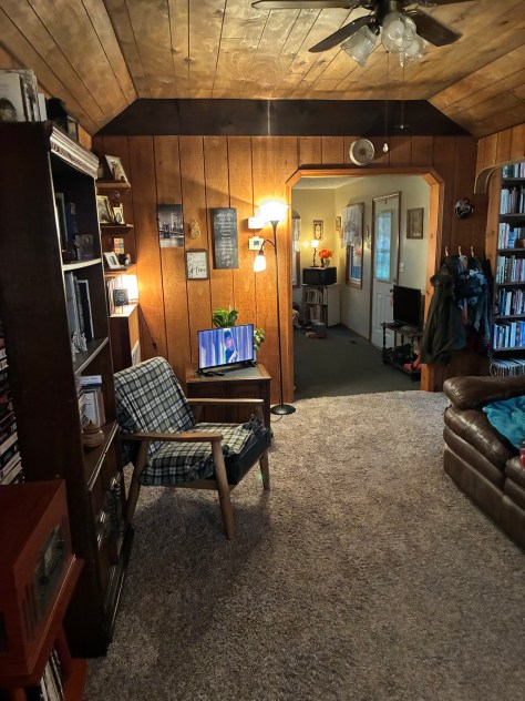 But this change of location wound up having its own emotional perils because so many of my beloved books are down there in the family room–