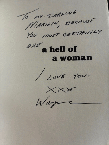Well, that sort of devastated me because I didn’t recall Wayne ever having loved me at all. I was under the impression we’d been “really good friends” throughout our marriage and for the 19 years since our divorce….