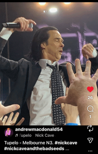 And Nick Cave sent out a Red Hand File this morning, from the airplane — he’s heading back home to England. He was replying to fans who had loved the shows in Australia, and Nick said, in part: