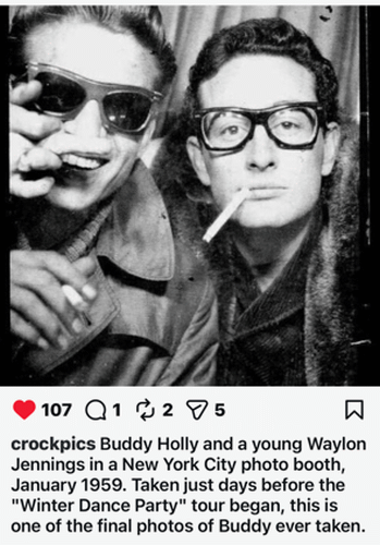 I like Buddy Holly’s music a lot, but I LOVED Waylon Jennings! So here’s this. From 1968, “Only Daddy That’ll Walk the Line”: