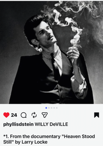 From Phyllis Stein, another fabulous photo of Willy DeVille. this one is from the documentary about him, Heaven Stood Still, 2022.