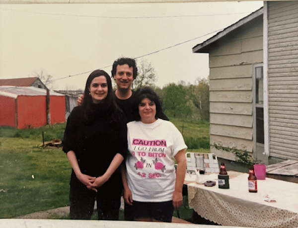 Me and Wayne, visiting Cherie, my birth mom, while on our honeymoon in 1993. I love her t-shirt! (“Caution: I go from 0 to bitch in 4.2 seconds”):