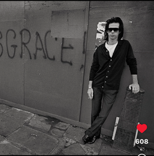 Nick Cave, with grace beside him, outside somewhere, smoking!