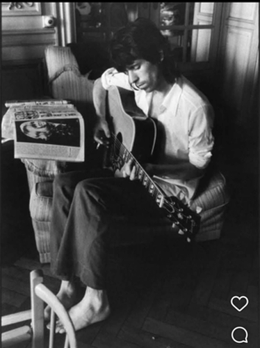 And for some reason, I really liked how Keith’s feet looked in this photo. (I’m thinking this was around the time that Brian Jones died? Brian’s photo is in the magazine in front of Keith.)