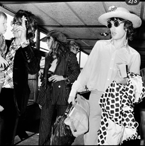 Keith helping Marlon learn how to smoke while leaving the Heathrow airport with Anita and Mick, in September 1970!