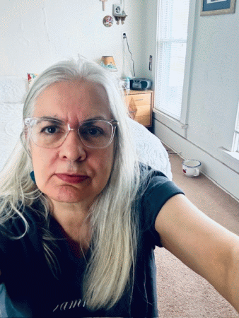 Me, early this morning, practicing in the Substack recording studio thingie, trying to get the upcoming mini-podcast thing underway.