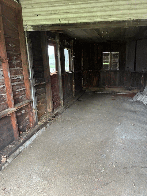 Here are a few photos of my little 115-year-old barn now that it is totally junk-free!! (This is the part of the barn where the buggy was kept in olden days. The other part of the barn, where the horse was kept, still has all my gardening stuff in it.)