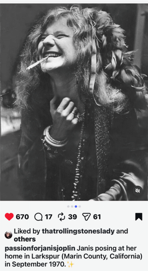 Janis in her new Larkspur home that she just loved — in September 1970. (The sad part: she was dead in a motel room, from an “overdose”, by Oct 4th, 1970.)