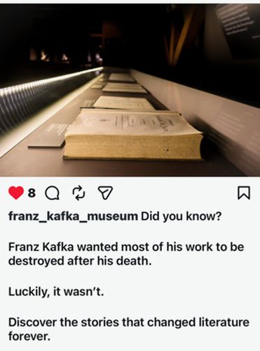 And I have to say that I have read everything he ever wrote, including every collection of letters he wrote that were posthumously published and which are all staggering and amazingly honest. And most of his stories and novels were published by his friends after he died (he was only 40 when he died from tuberculosis, and he was not a well-known writer yet). I just love this man’s beautifully neurotic mind; but the whole idea of anything being “Kafkaesque” did not come into being until long after he died. And we would not have ever known his work if his friends hadn’t stepped in and ignored his wishes at the end.