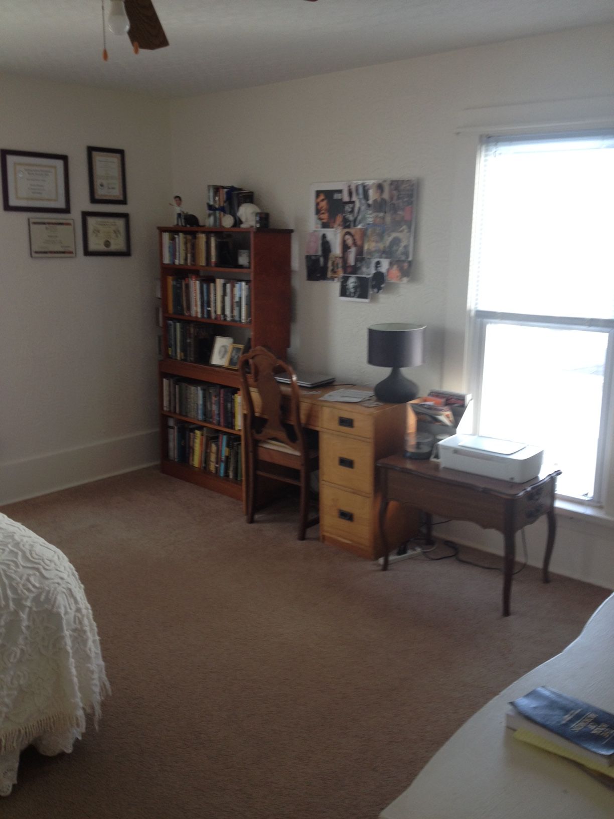 I always just assumed that I would buy a bigger, more professional desk at some point. Especially in the late 90s, when desktop computers were enormous and took up the whole desk. But the years went on, and I wrote 5 novels, edited 7 anthologies, wrote 4 or 5 novellas, about 100 short stories, 3 TV pilots, and countless essays, blog posts, letters, etc., at this very small desk!