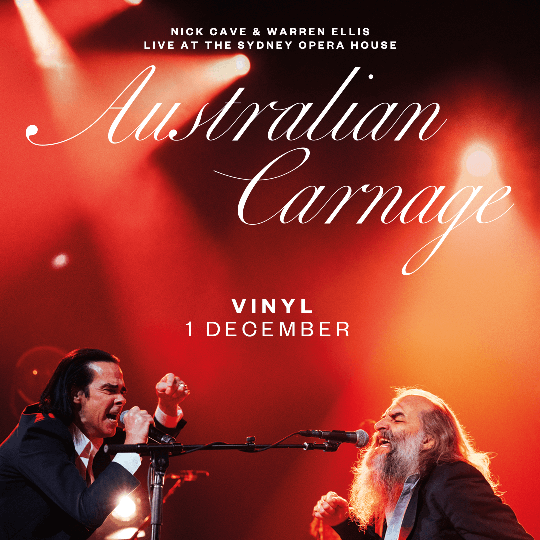 Nick Cave and Warren Ellis, live at the Sydney Opera House, Australian Carnage, is out on vinyl this coming Friday, December 1st. Pre-order or stream it HERE.