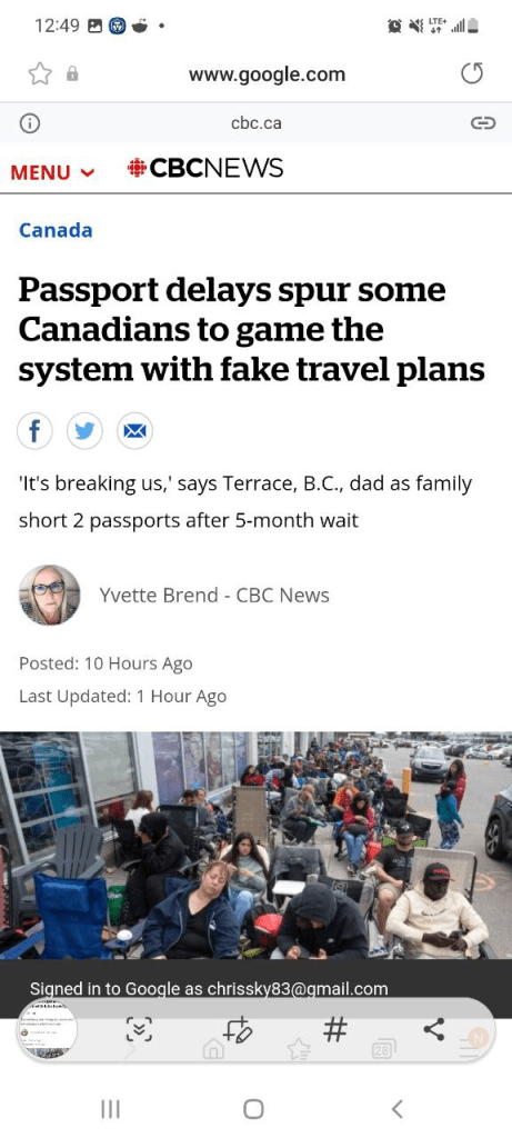 “Third world status with too many TRYING TO ESCAPE. 340,000 backlogged passport applications in Canada. Thanks to compliance of Trudeaus policies aka the WEF agenda.”