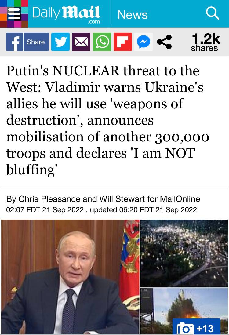Russian media is now calling this a transition to an actual “War” instead of a Special military operation.