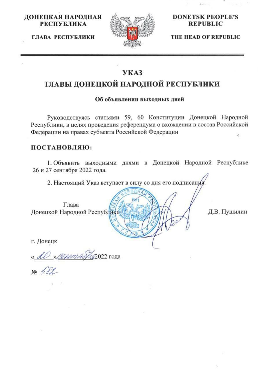 “❗️🇷🇺 Holidays declared from 26 to 27th September in the Donetsk People’s Republic.