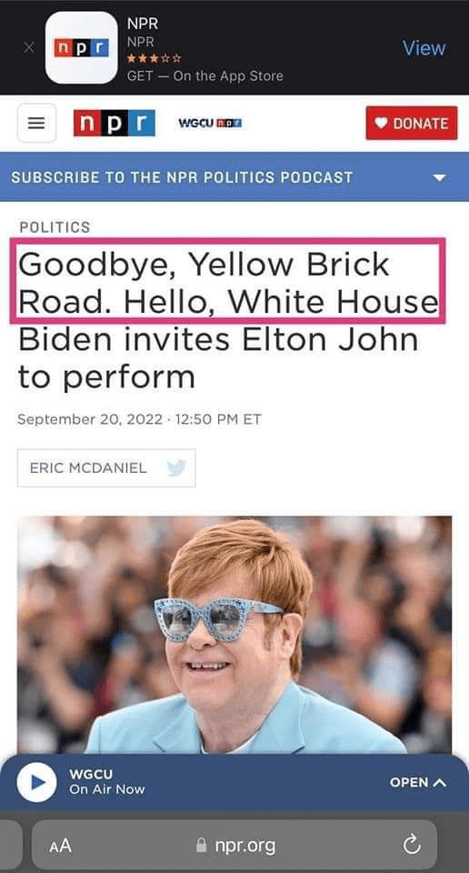 “Elton John to Perform at White House for ‘A Night When Hope and History Rhyme’ Event Elton John will be entertaining the audience at an event held on the South Lawn on Friday called, ‘A Night When Hope and History Rhyme,'”
