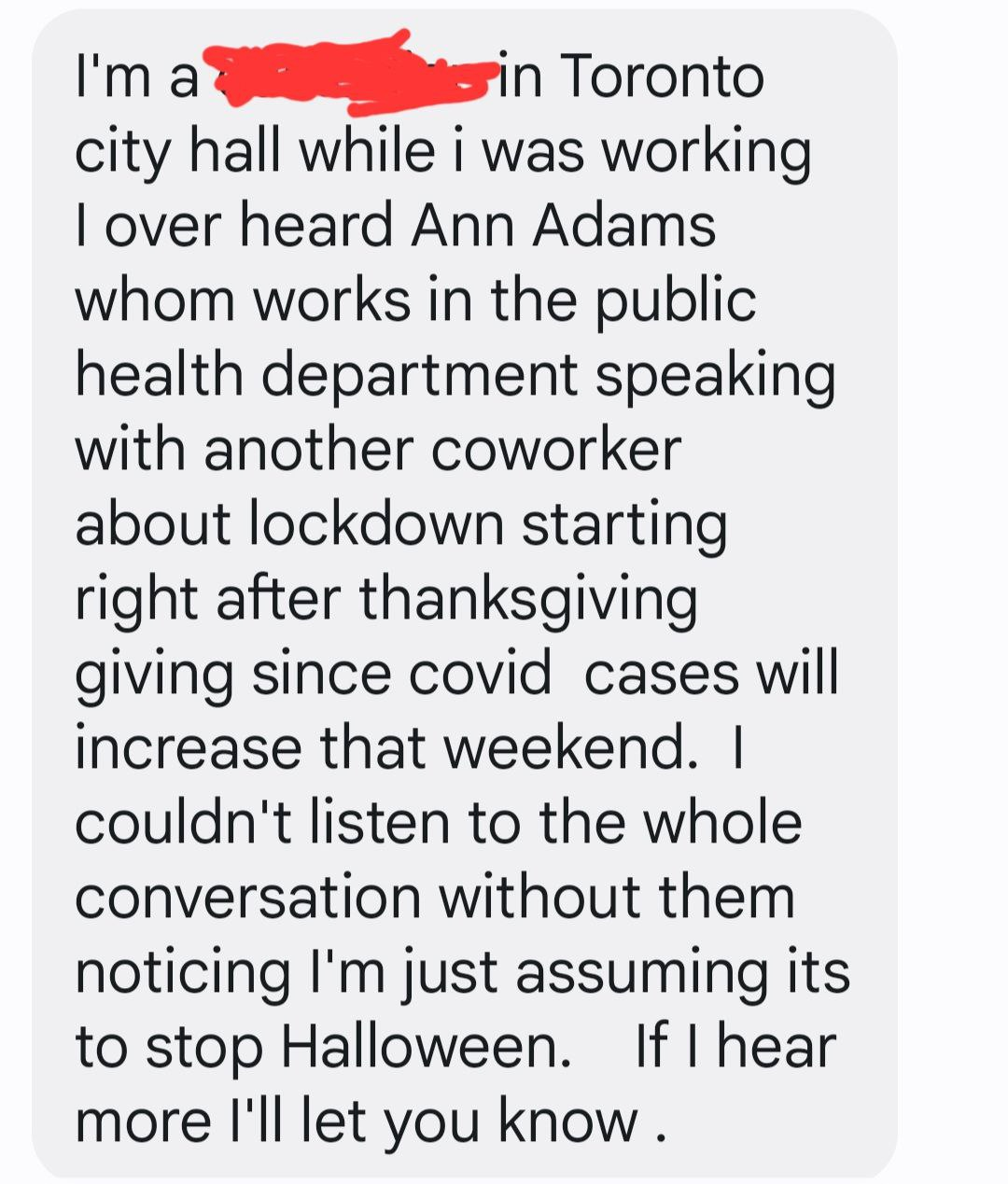 Chris Sky posted to his channel, a city hall worker saying that a new lockdown is coming for Toronto next week — here’s hoping he’s totally wrong about that. That would absolutely totally 100% fuck up our play!!! We’ll see.