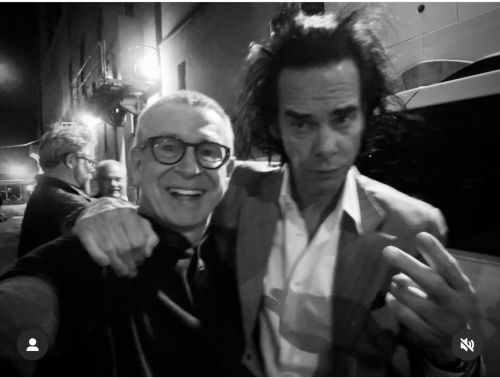 A fan took this photo of Nick Cave outside the theater in Detroit Sunday night. I think it’s so funny! Probably the worst photo of him that I have ever seen. (It was really windy and he was in a hurry to get into the theater…):