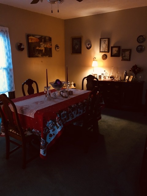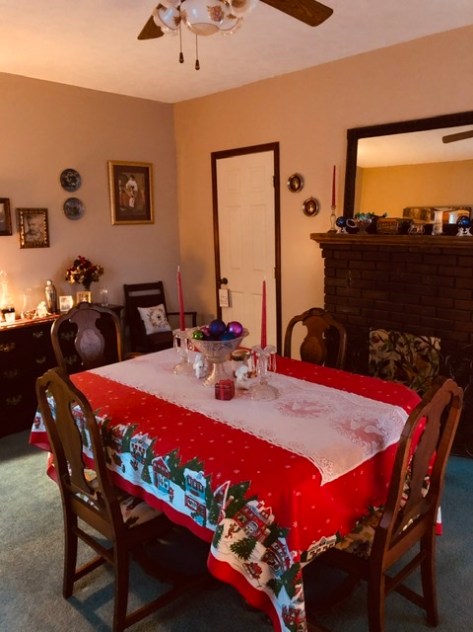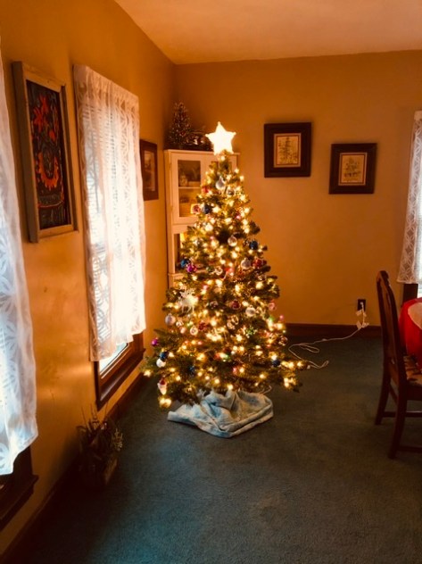 So those are shots of my dining room in there, too. I think it’s funny that it’s decorated so much because not a single solitary soul will see it. No one ever comes to visit me! Here’s hoping the cats appreciate my festive mood…