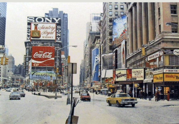 It was actually taken the winter before I moved to NYC, but Times Square looked exactly like this back when I was living on W.45th Street — from 1981-1983 — with my first husband, Chong. We only lived 2 blocks from Times Square. From the billboards, to the stores, to the cars — it all looked exactly like this (with or without the snow).