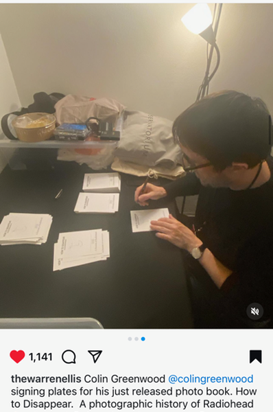 And Warren Ellis posted this last night — Colin Greenwood, hard at work, signing his name:
