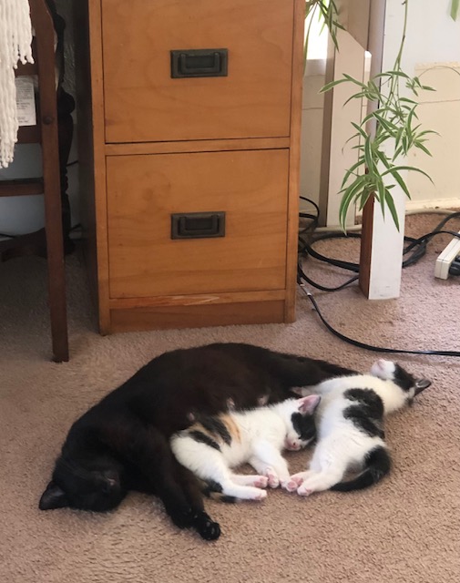 And even though they had to stay by themselves closed up in the guestroom for a second night, they are back among their cat-mates today and very happy to be back home.