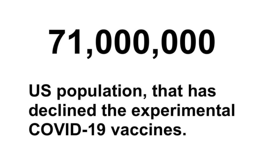 71,000,000 people have declined vaccination against Covid-19 (don’t forget the people who have not been vaccinated but have purchased certificates of vaccination)