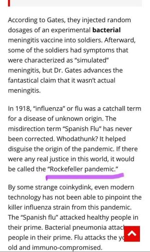 “🔴🔴In 1918 the so called Spanish flu. The Rockefeller’s Working with DR Gates. 103 years later And again a Gates involved But this time it was not a doctor But a creep related to the Rockefeller.”