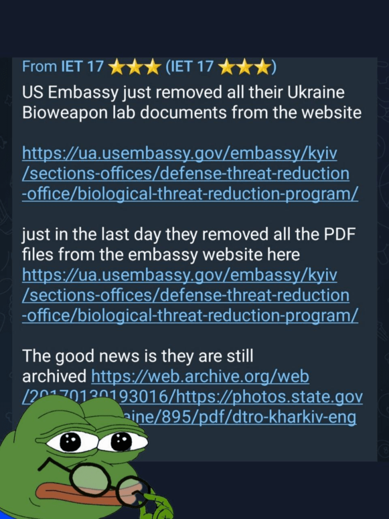 BREAKING: Russia publishes documents which show Ukraine was working on biological weapons near russian borders — such as Anthrax and Plague & that the pentagon has instructed to destroy them”