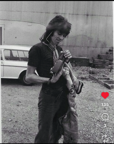 Yet another photo of Keith backstage with Jolie Jones during the Rolling Stones very crowded 1972 tour!! Here, he’s getting ready to light her cigarette!! (If only people would leave them the fuck alone!)